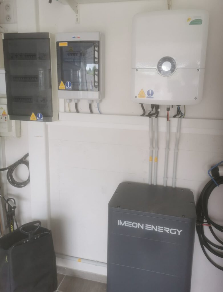 Pour piloter l’énergie produite, nous avons choisi un onduleur hybride IMEON, développé en France. Associé à une batterie de 10,65 kWh, il permet de stocker l’énergie solaire et de la consommer au moment le plus opportun.